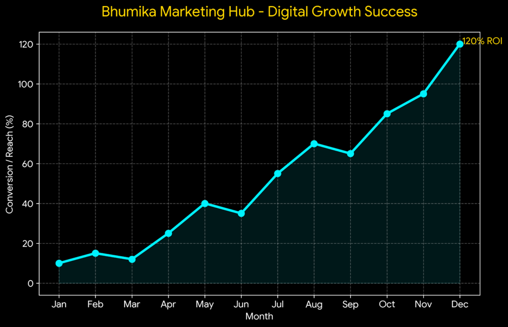 Home Grow Your Business Online with Result-Driven Digital Marketing We help businesses increase visibility, generate quality leads, and boost sales through smart digital marketing strategies. 🟧 Get Free Strategy Call 🔹 Read More About Us Who We Are Bhumika Marketing Hub is a results-focused digital marketing agency dedicated to helping businesses grow online. From SEO and social media to paid advertising and website optimization, we provide complete digital solutions that deliver real results. Read More About Us Our Services Section Our Digital Marketing ServicesService Cards (6):Search Engine Optimization (SEO)Improve Google rankings and organic traffic.Social Media Marketing (SMM)Grow your brand on Instagram, Facebook & LinkedIn.Google Ads & PPCInstant traffic and high-quality leads.Website Design & DevelopmentFast, responsive, conversion-focused websites.Content MarketingBlogs, website content & brand storytelling.Local SEORank your business on Google Maps & local searches. Why Choose Us ✔ Result-Oriented Strategies✔ Affordable Pricing✔ Transparent Reporting✔ Experienced Digital Experts✔ 100% Client Satisfaction Industries We Serve Small BusinessesStartupsE-commerceReal EstateEducationHealthcareLocal Service Providers Testimonials What Our Clients Say⭐ “Bhumika Marketing Hub helped our business rank on Google and increase leads.”⭐ “Professional team and great results.” Ready to Grow Your Business? 🟧 Get Free Consultation📞 Call Now | 📧 Email Us